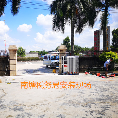 深圳电动门装置 汕尾陆丰南塘税务局伸缩门装置,汕尾陆丰南塘税务局装置670#铝合金电动伸缩门项目。